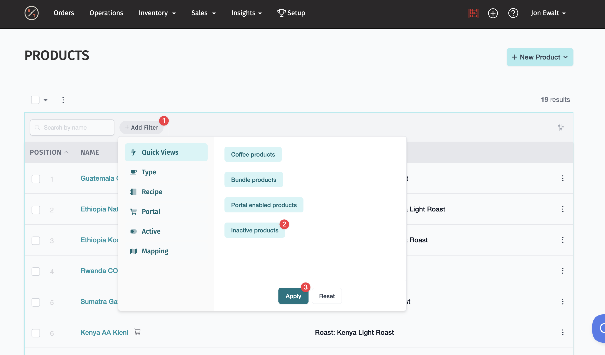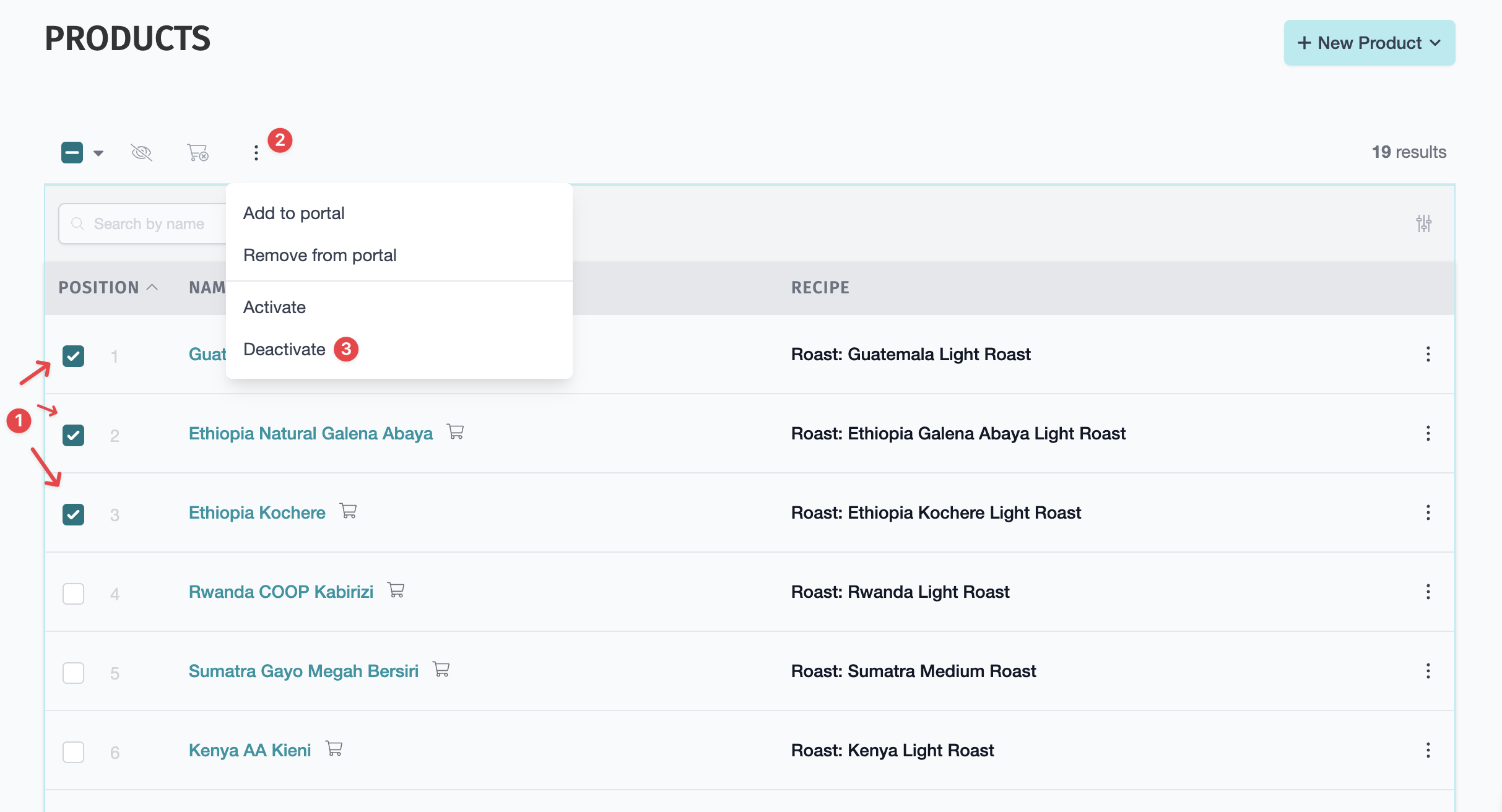 You can Reactivate a product if you like, just check to ensure if it is a coffee product, that the recipe (roast or blend) is still active. Example: Often roasters will have seasonal product that they may deactivate for majority of the year and only activate when they are selling it.