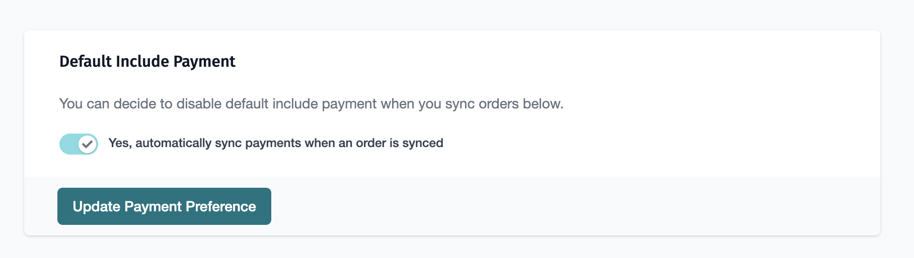 When enabled, this setting allows for the automatic recording and transfer of payment details, ensuring that financial transactions are accurately reflected in both systems. This feature helps streamline accounting processes by reducing manual data entry and maintaining consistent financial records across platforms.
