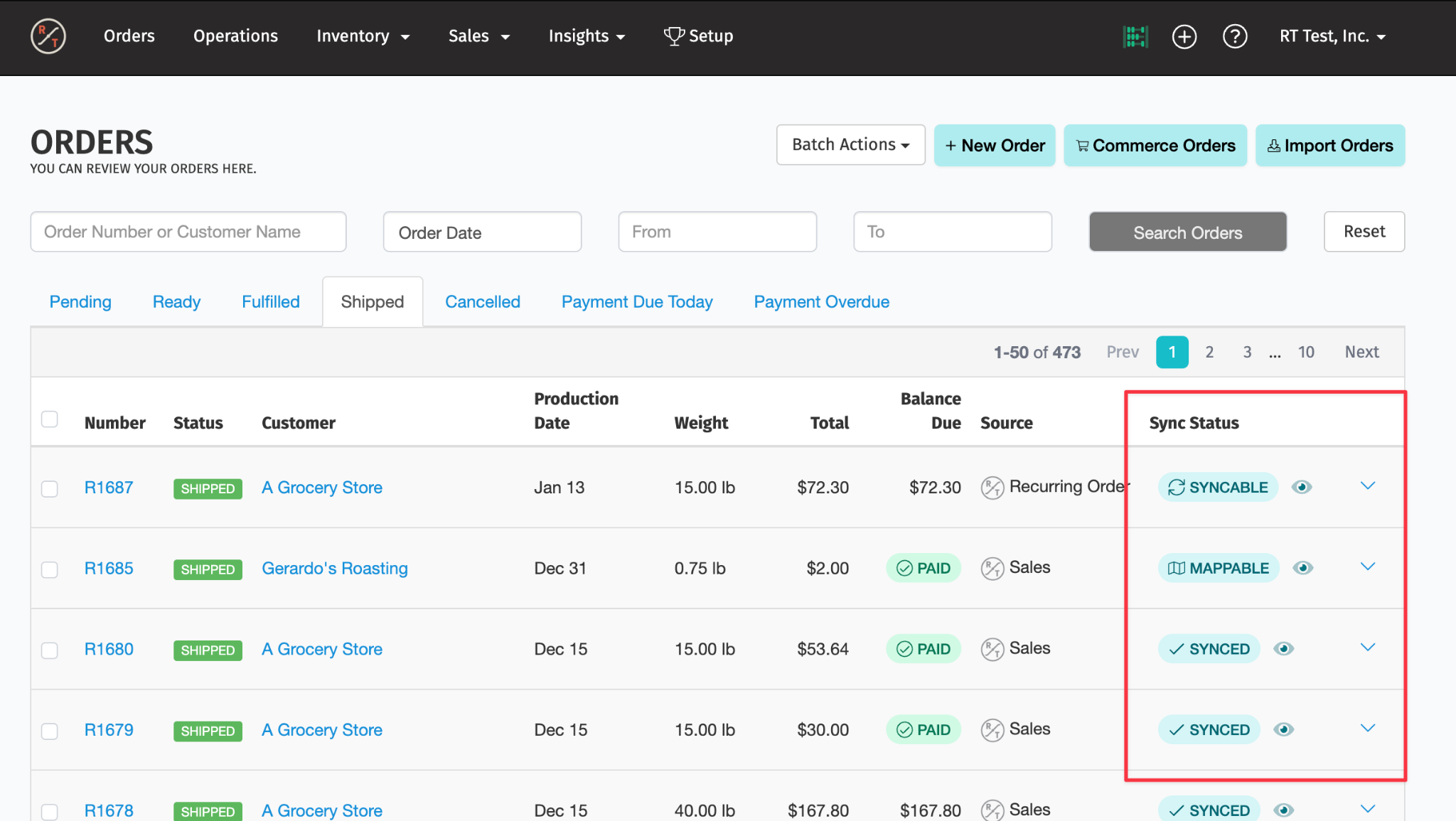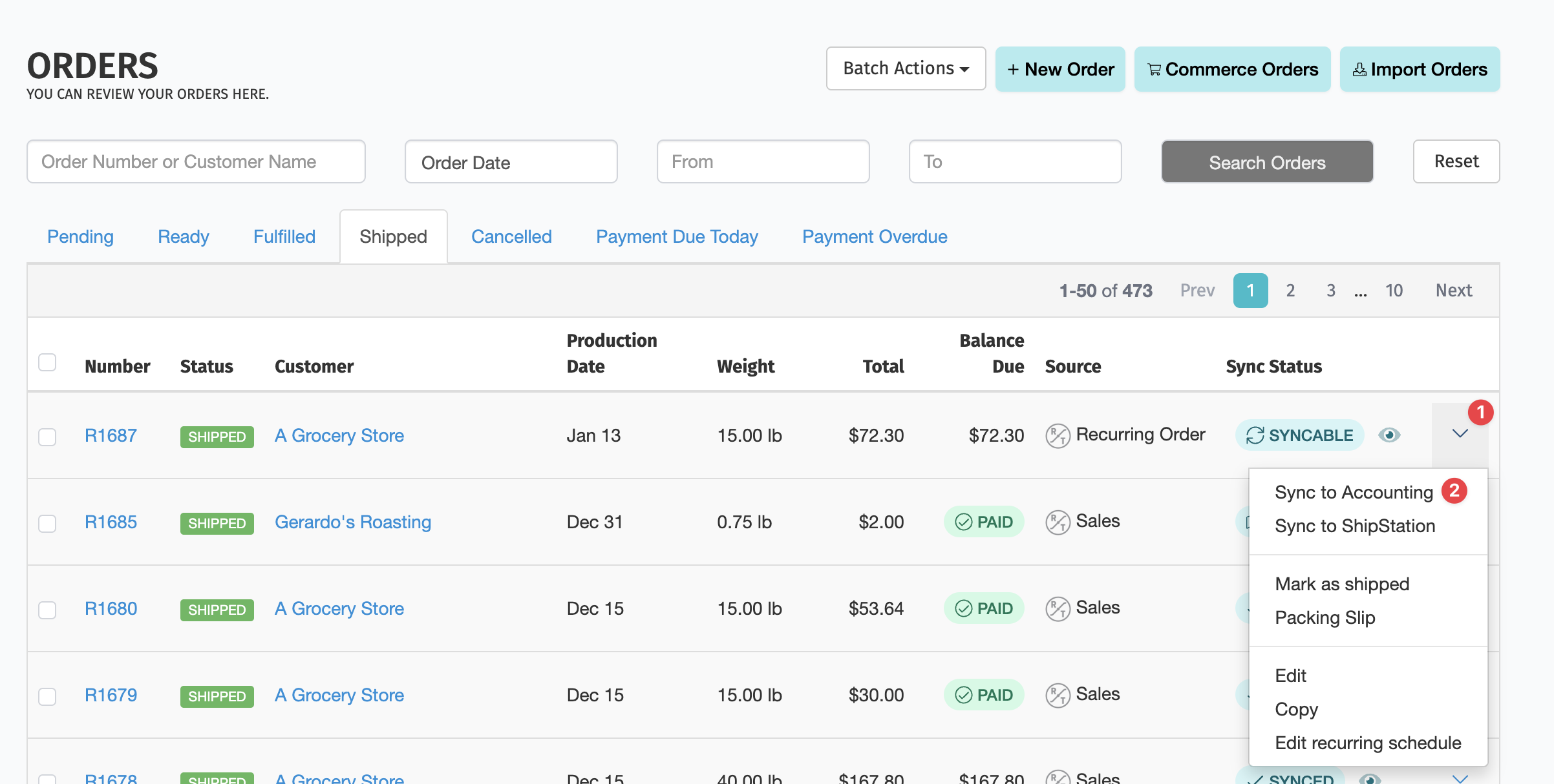 - Orders showing SYNCED have already been synced to accounting.