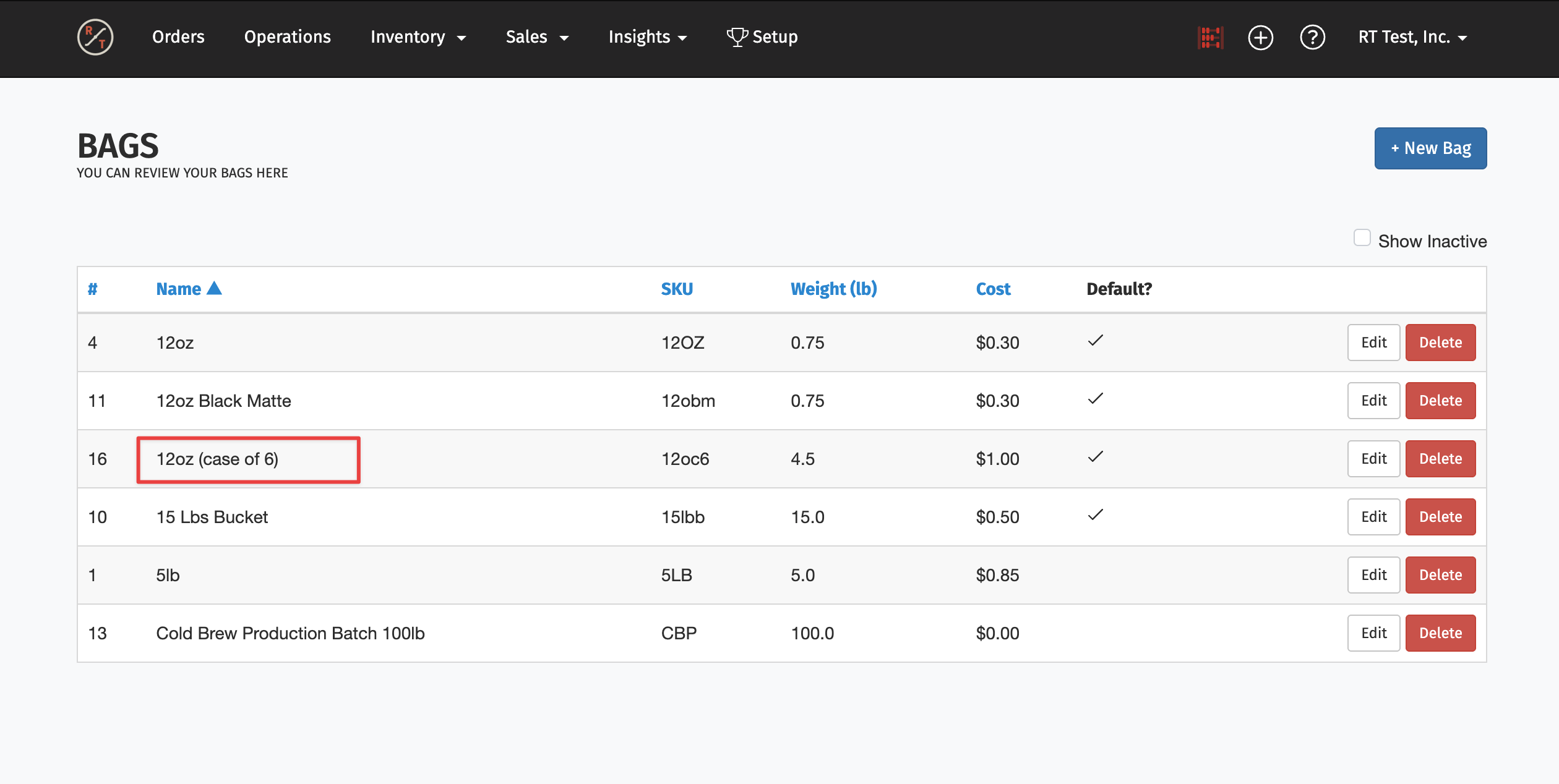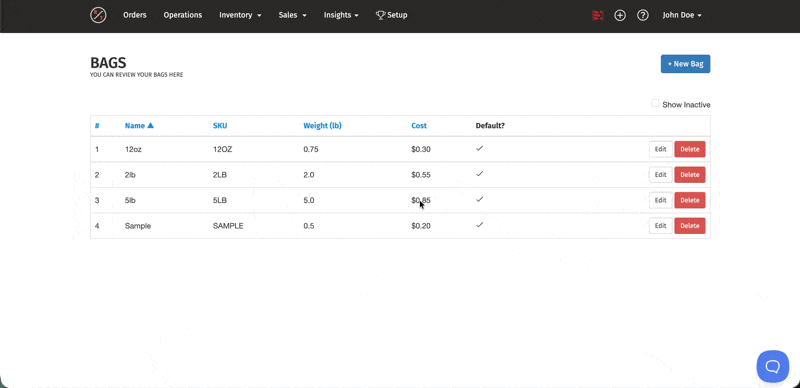 Learn More: For details on creating and managing bag sizes, see Bags: Creating, Updating, Settings and more.