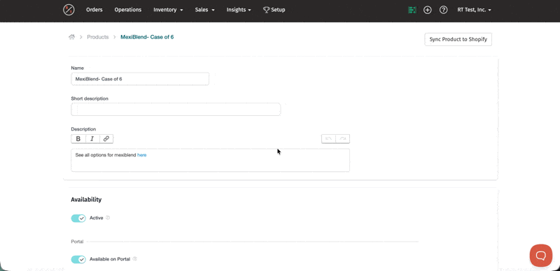 Bag level setup — Create a case as a bag size, then enable it as a variant within an existing product. For example, your Mexi Blend product would have variants like 12oz, 15lb bucket, and 12oz case of 6.