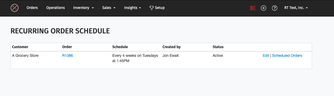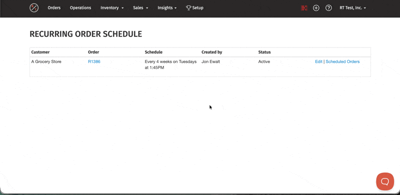 Note: Editing the original base order after the fact does not update the recurring schedule. If you make a change to that order in Orders, the recurring order is unaffected.